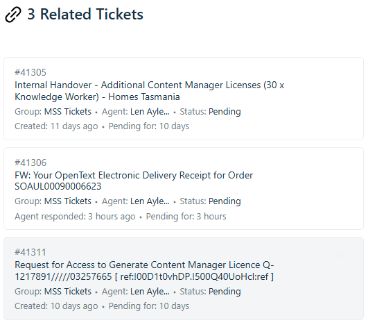 On any ticket → right column Linked Tickets